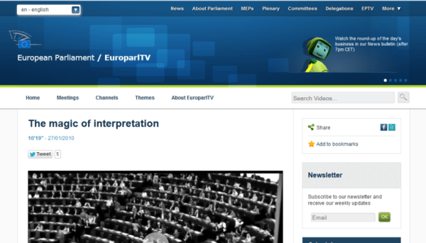 Yesterday I received this link from a friend per email. After watching it I have been quite anxious to share it, as soon as I had the chance to write again a few words in the blog. It is a very nice video that describes, what it means to be an interpreter for the European Parliament, and how they contribute to keep things running smoothly, but above all how interpreters support communication among so many different cultures and languages to keep building the  European Union common project.